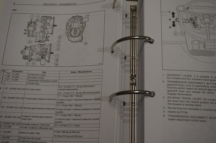 Main Sections: Safety Rules Maintenance Technical specifications Transmission Front axle Rear axle Brake system Hydraulic system (full hydraulic diagrams) Chassis Steering system Cab, heating and air conditioning Electrical system (full electrical diagrams) Loader attachment Backhoe attachmens